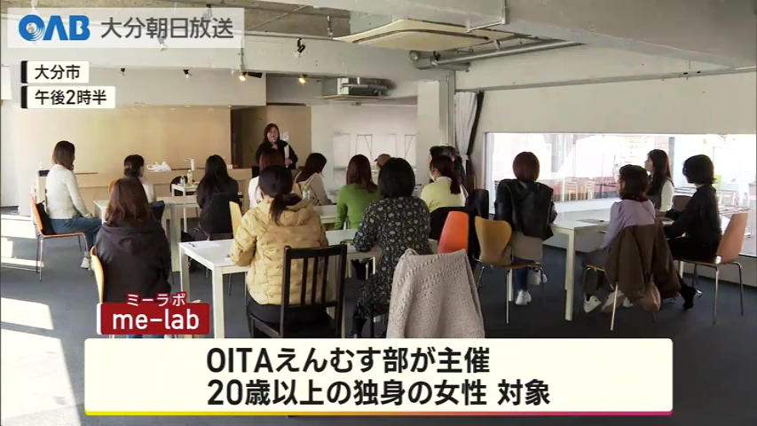 体験型のイベントで出合いをサポートします。 大分県の婚活支援事業を手掛けているOITAえんむす部出会いサポートセンターが、20歳以上の独身の女性を対象にしたイベント「me-lab」を初めて開催。 地元で活躍する女性経営者によるトークセッションなどがありました。 約20人の参加者が価値観や未来の自分について想像しワークシートに記入しました。 主催したOITAえんむす部は今の自分を知ってこれからの選択肢を考えてもらえればとエールを送っています。