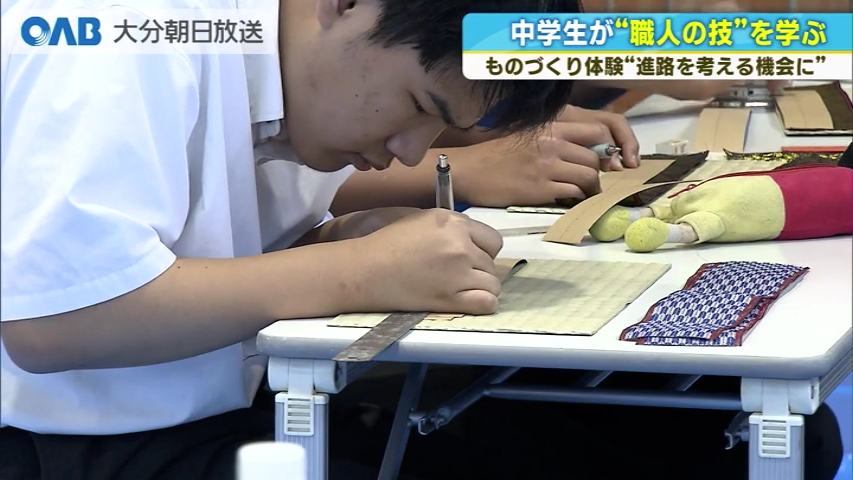 子どもたちがものづくりの魅力を学びました。 別府商工会議所が、地元の企業に関心を持ってもらおうと初めて企画しました。 明豊中学校の3年生40人が参加し、小さな畳を作ったり、フロアタイルを貼ったりしました。 ■生徒: 「自分はこういう作業が好きなので、難しいけど結構楽しいです」 「自分の将来の職業の選択肢を少し広げることができて、とてもよかった」 別府市商工会議所は「将来の進路について考える機会にしてほしい」としています。