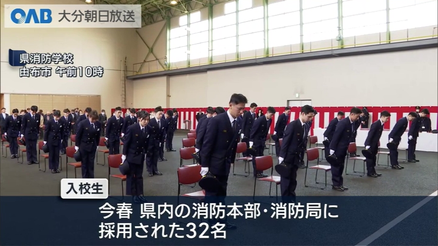 県消防学校で入校式が行われ、新たに採用された職員が消防の道へ第一歩を踏み出しました。 県消防学校に入校したのは、この春、県内の消防局や消防本部に採用された32人です。 入校式では、入校生を代表して大分市消防局の永松実樹さんが、「消防の職務の重要性を深く認識し、誠心誠意訓練に取り組みます」と宣誓しました。 ■入校生: 「以前、目の前で倒れた傷病者の方がいて、その時にかけつけてくれた救急隊の方がとてもかっこよく、私も救急隊として働きたいと思い、消防士を目指した」 ■入校生: 「1人の人として信頼され、市民の皆さんに愛される消防職員になっていきたい」 およそ半年間、放水や救助などの実技に加え、法律などの知識も学びます。 その後、10月に県内各地の消防署へ配属される予定です。