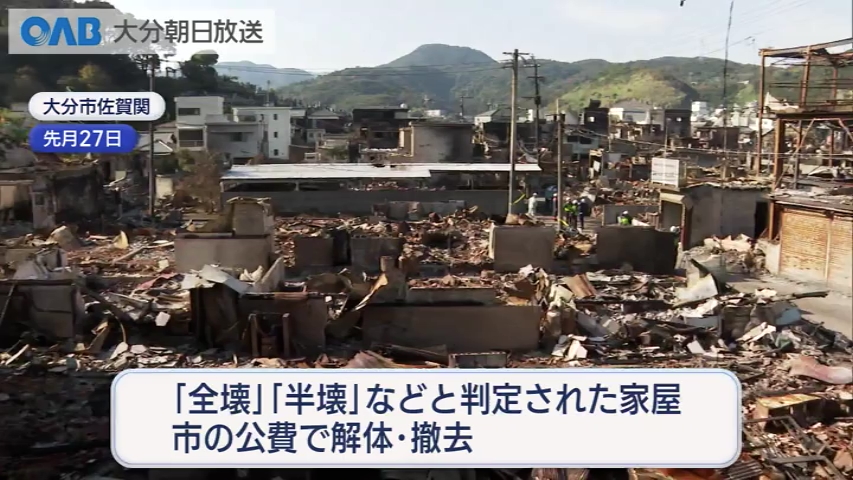 佐賀関の火災について、大分市は「住民の希望に応じて市が建物を撤去する」と説明しました。 被災した建物の解体・撤去について、21日、住民説明会が開かれました。 罹災証明書や被災証明書で「全壊」や「半壊」などと判定された家屋は、住民からの申請に基づき、全額、大分市の公費で解体と撤去を進めます。 【家が全焼した住民】 「市に委託してやってもらう。(解体する)意向の書類を出してきた」 大分市は、撤去作業を早ければ1月中旬には始めたいとしています。