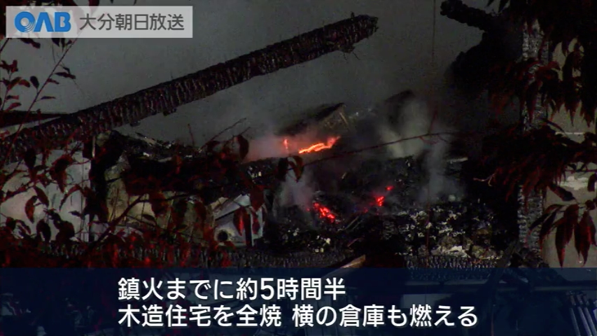 鎮火まで約5時間半 中津市で住宅全焼 けが人なし 29日夜、大分県中津市で住宅1軒が全焼しました。 けがをした人はいませんでした。 警察によりますと、29日午後8時前、中津市山国町で「家の中が燃えている」と住んでいる73歳の男性が消防に通報しました。 鎮火までに約5時間半かかり、木造2階建ての住宅1軒を全焼して、横にある倉庫も燃えました。 この家には通報した男性が1人で住んでいましたが、逃げ出してけがはありません。 警察と消防は男性から当時の状況を聴くとともに実況見分をして火事の原因を調べています。