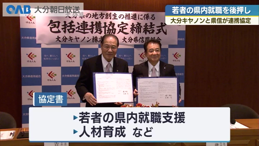 大分キヤノンと県信組が協定 若者の地元就職を後押し