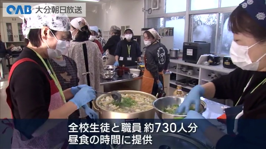 いよいよ受験シーズンです。高校生の保護者たちが応援の気持ちを込めた豚汁を作りました。 大分雄城台高校では、受験を迎える生徒を元気づけようと、毎年、保護者が野菜たっぷりの豚汁「雄風鍋」を振る舞います。 20年ほど前から続く恒例行事で、季節の野菜をたくさん食べてもらおうと豚汁には白菜など12種類の具材を使っています。保護者およそ40人が朝から仕込み作業をしました。 保護者 「みんなが温まって頑張れるようにという思いを込めて作ってます。」 「最後の思い出なのでお母さんたちも愛情いっぱいで作っています。」 保護者は全校生徒と職員およそ730人分を作り昼食の時間に提供されます。