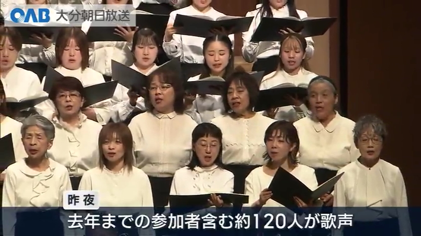 年の瀬の音楽イベントとして、長年親しまれてきた「おおいた第九の夕べ」。 その伝統を受け継ぐ形で、芸術文化短期大学が昨夜、再び開催しました。 「第九の夕べ」は、市民参加型で48年にわたり続いてきましたが、去年、ファイナル公演を迎えました。 しかし、惜しむ声が多く寄せられたことから、芸術文化短期大学がオープンカレッジの講座を開設し、伝統を引き継ぎました。 25日夜は、去年までの参加者を含むおよそ120人が、歌声を響かせました。 ■メゾソプラノ 愛甲久美さん: 「毎年グランシアタで行われている第九の演奏会を今年も行うことができた。かたちは違いますけど、お客様にとってもよかった」 芸術文化短期大学では、今後もオペラを体験できるオープンカレッジを継続していく予定です。