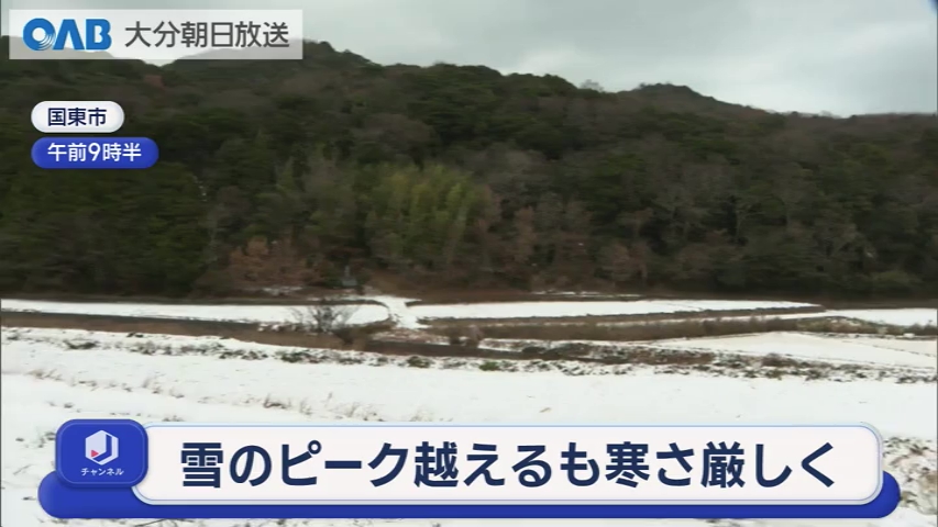 九州北部の上空5500メートルにマイナス30℃以下の強い寒気が流れ込んでいたため2日は県内各地で雪が降りました。 ピークは越えたものの、3日の最低気温は湯布院でマイナス7.5℃、玖珠でマイナス7.2℃など、依然、厳しい冷え込みは続いています。 この時期らしい寒気はまだ残るため、引き続き路面の凍結などに注意が必要です。