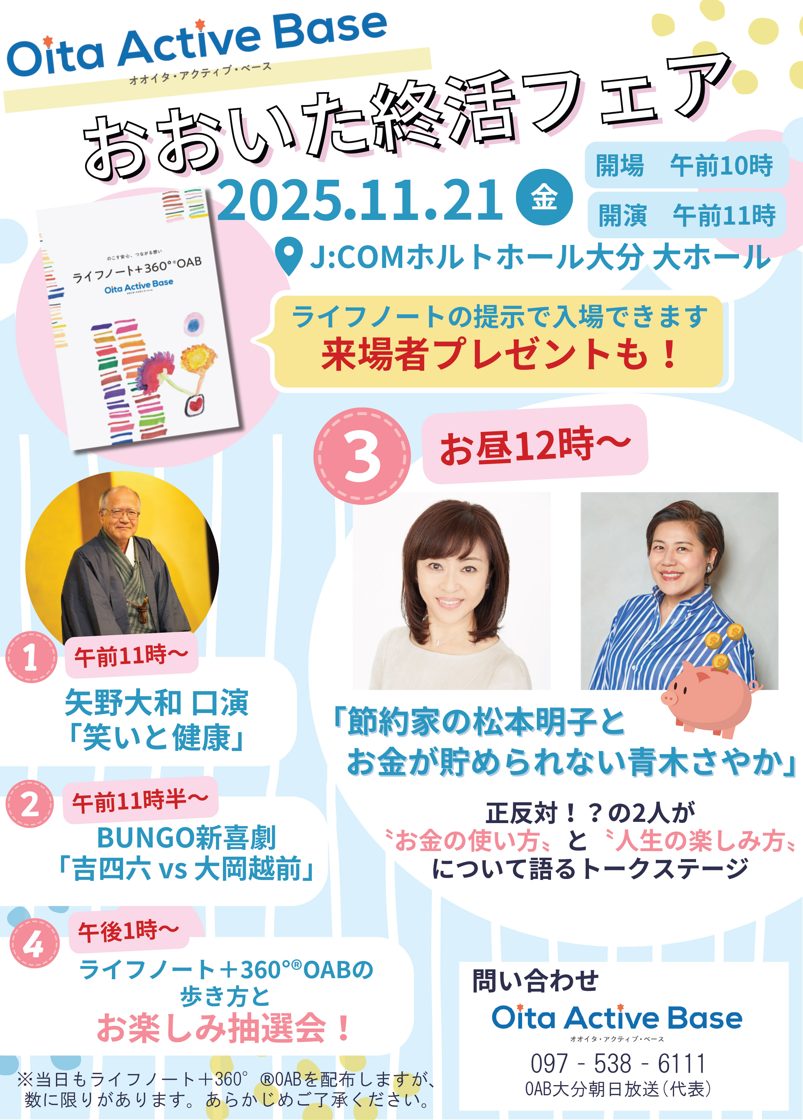 おおいた終活フェア2025は“エンディングに向けて備えるため”ではなく“今後の人生をより楽しむ”ためのイベントです。笑いあり、学びありの時間をお楽しみください!