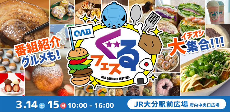 今年度、OABが紹介したグルメの総決算イベント。番組(れじゃぐる等)やイベント(OABマルシェ)で扱ったイチオシグルメを大集結させます。OABにしか出来ないOABメイドのグルメイベントを開催します。