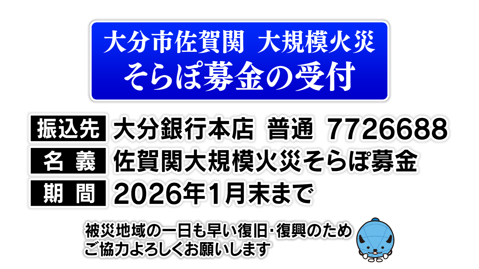 2025年11月18日に大分市佐賀関で発生した大規模火災により被害に遭われた皆さまには心よりお見舞い申し上げます。