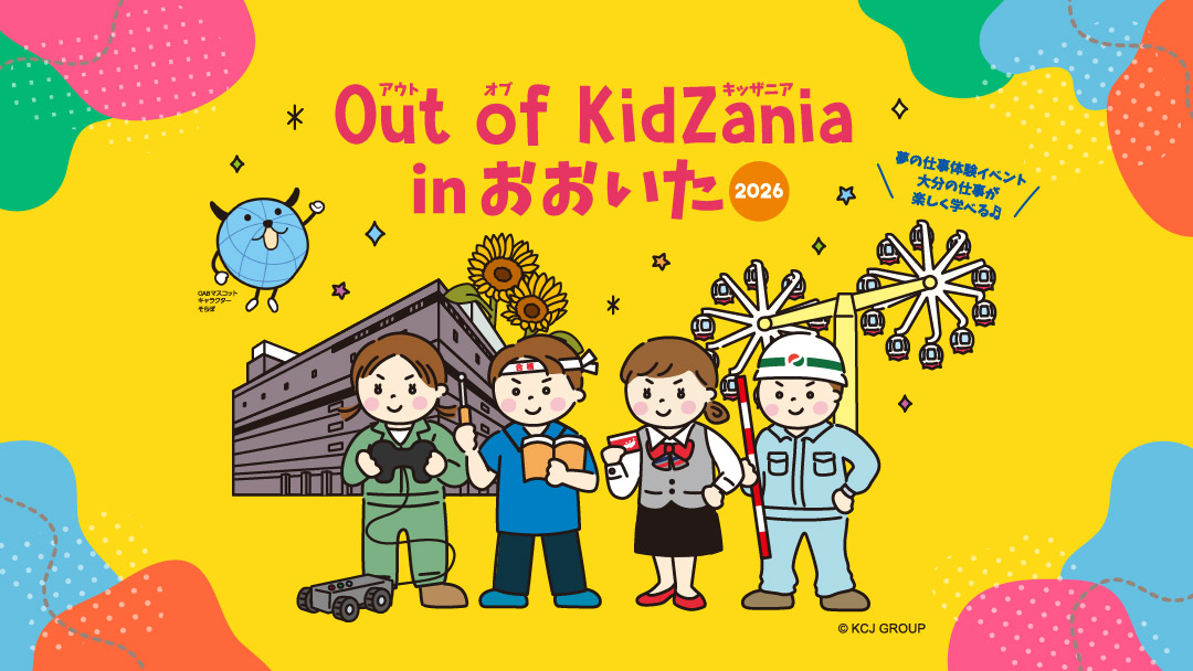 Out of KidZania in おおいた実行委員会と大分朝日放送株式会社(本社:大分県大分市、代表取締役社長:佐古 浩敏、以下OAB)は、こどもの職業・社会体験施設「キッザニア」の企画・運営を行うKCJ GROUP 株式会社(本社:東京都中央区、代表取締役社長:圓谷 道成、以下 KCJ GROUP)監修のもと、大分県内の小・中学生を対象に、キッザニアの街を飛び出して、よりリアルな体験を追求したプログラム「Out of KidZania in おおいた」を、2026年5月9日(土)、10日(日)の2日間にわたり開催します。