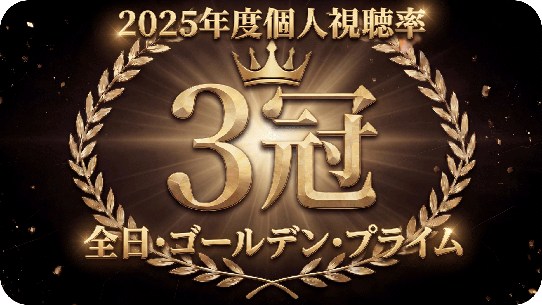 平素よりご視聴いただき、誠にありがとうございます。このたび、皆様のご支援により、大分地区において以下の視聴率1位を獲得いたしました。 〈2025年度個人視聴率〉