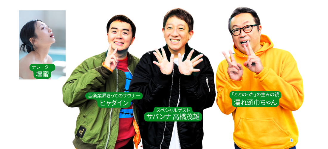 今回BSを飛び出しOABとコラボ!音楽業界きってのサウナー・ヒャダインと、 レジェンドサウナーで名言「ととのった」の生みの親・濡れ頭巾ちゃんが、