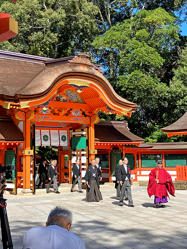 10年に1度の行事、臨時奉幣祭は、天皇が勅使を神社に参向させ、お供え物を奉献する祭儀である。「勅使参向の社」と称される神社は全国に16社あり、そのうちの1社が宇佐神宮だ。宇佐神宮内にかかる「呉橋」は10年に1度、勅使がわたる貴重な神橋となっており、ことしがその年にあたった。宇佐市民の心のよりどころである宇佐神宮には、国内外から年間150万人の参拝客が訪れる。県の代表的な観光とである宇佐神宮の魅力もご紹介。
