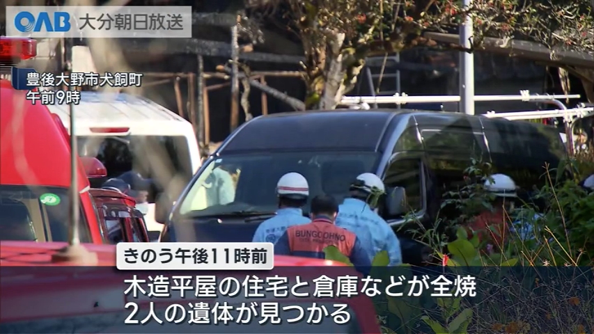 13日夜、大分県豊後大野市で住宅が全焼し焼け跡から2人の遺体が見つかりました。 警察と消防によりますと、13日午後11時前、豊後大野市...