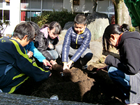 今回は、横瀬小学校で卒業間近の六年生とジンチョウゲを植えました。